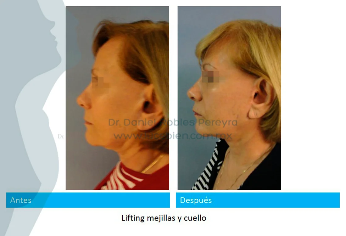 Un facelift completo mejora la tensión de la piel y las partes blandas de los dos tercios inferiores de la cara, de la zona de las ojeras , de las mejillas, y por debajo de la línea mandibular, mediante la remoción del exceso de grasa, tensionando el plano muscular descolgado y la readaptación de la piel a este nuevo contorno facial. Además de poder dar volumen perdido a ciertas zonas de la cara que así lo requiriesen. Por ejemplo: mentón, pómulos, labios, surcos nasales, sienes ( fosas temporales) mediante la transferencia de grasa a la cara, además de poder incluir en la cirugía a parpados y cejas como una extensión de la cirugía de rejuvenecimiento cervicofacial.
